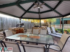Built in BBQ in pool yard with ceiling fan